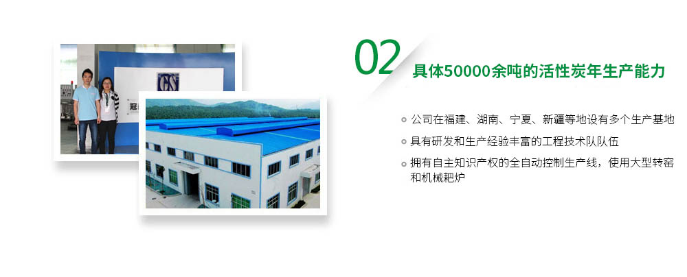 廣東冠森炭業科技有限公司是集活性炭研發、生產、銷售為一體的企業。注冊資金2180萬元人民幣具有研發和生產經驗豐富的工程技術隊伍,并與高校的活性炭專家緊密合作,專業從事各類專用活性炭研發、生產、銷售。公司在福建、湖南、寧夏、新疆等地設有多個生產基地,擁有自主知識產權的全自動控制生產線,使用大型轉窯和機械耙爐,主要以椰殼、果殼、木屑及煤質等為原料,以創新工藝技術,生產各種規格和型號的活性炭,公司目前具有8000余噸的活性炭年生產能力。能準確熟練采用中國(GB)標準、日本(JZS)標準、美國(ASTM)標準、德國(DZH)標準進行活性炭的生產和質量管理。